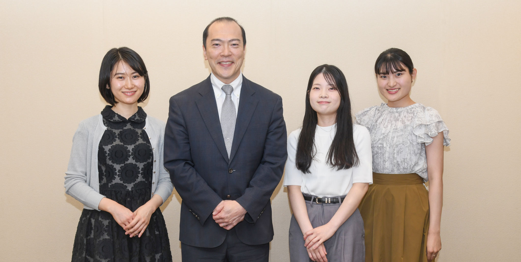 冲永:小論文コンクールは、日本の将来を担う高校生の皆さんに、心に描いている夢や将来像を言葉にする機会を提供しています。その言葉を〝原動力〟にして、見事に夢を形にされ、さらにキャリアを積み重ねられている皆さんのお話をお聞きし、主催者として改めてうれしく思います。